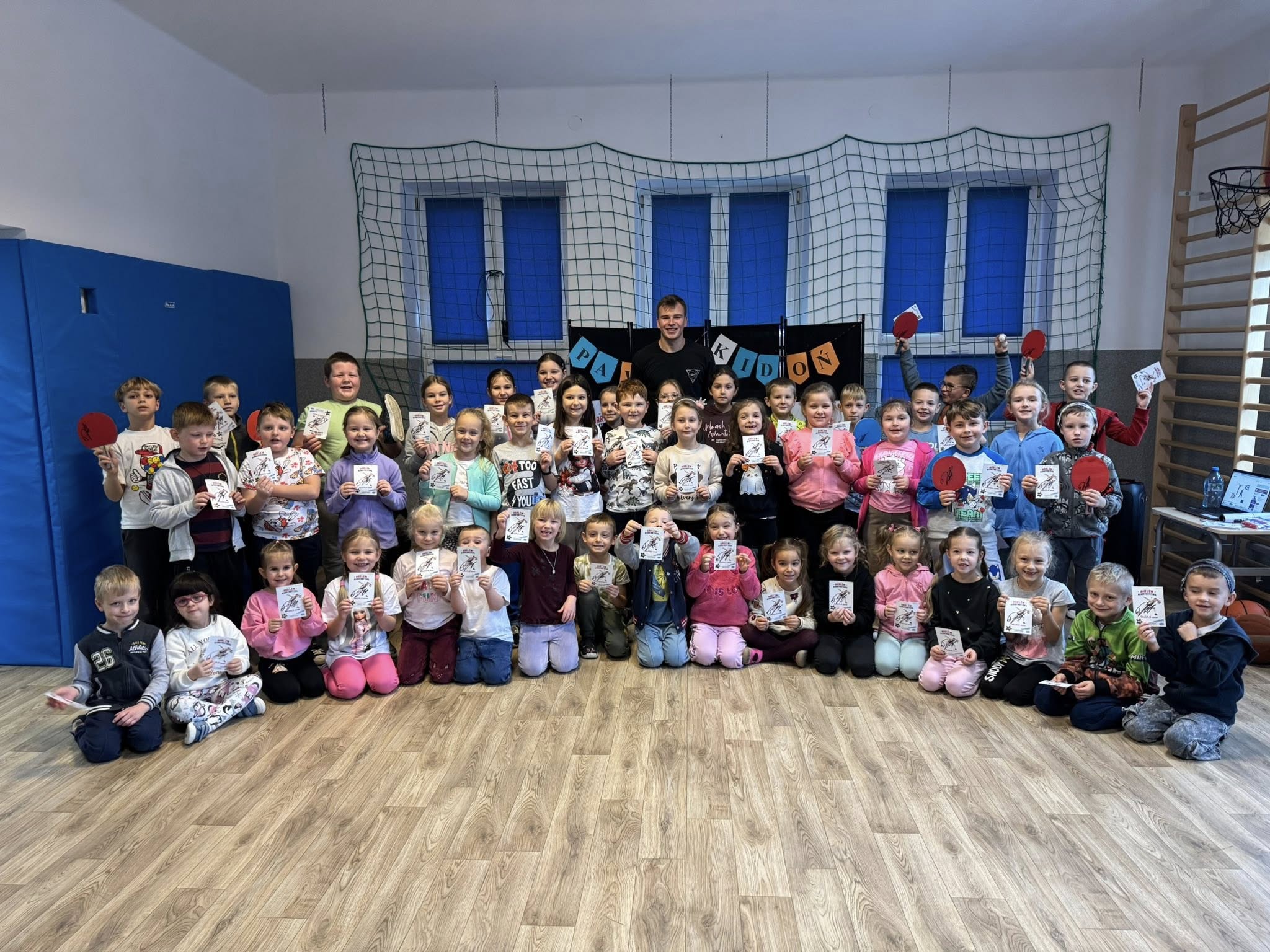 Paweł Kidoń zaprezentował wspaniały pokaz koszykarskich tricków, opowiedział o swojej pasji, a także chętnie pozował do zdjęć i rozdawał autografy. Każdy uczeń mógł także sam spróbować swoich sił. Czy są wśród nas następcy mistrza? Jeszcze się okaże