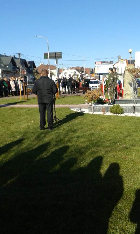 Tegoroczne obchody Narodowego Święta Niepodległości w gminie Jabłonka, podobnie jak w innych miejscach Polski, miały wymiar symboliczny. Z tej okazji Wójt Gminy Jabłonka Antoni Karlak zorganizował uroczystość upamiętniającą to ważne wydarzenie. Liczna grupa uczniów klas ósmych naszej szkoły wraz z wychowawczyniami p.H.Korbą i p.M.Kidoń oraz dyrektor szkoły K.Miąskowską brała udział w tej uroczystości. O godzinie 12.00 w miniparku obok Urzędu Gminy nastąpiło uroczyste odśpiewanie hymnu państwowego.Następnie złożono wieńce pod tablicą poświęconą bohaterskim Orawianom i budzicielom ducha Narodwego na Orawie.