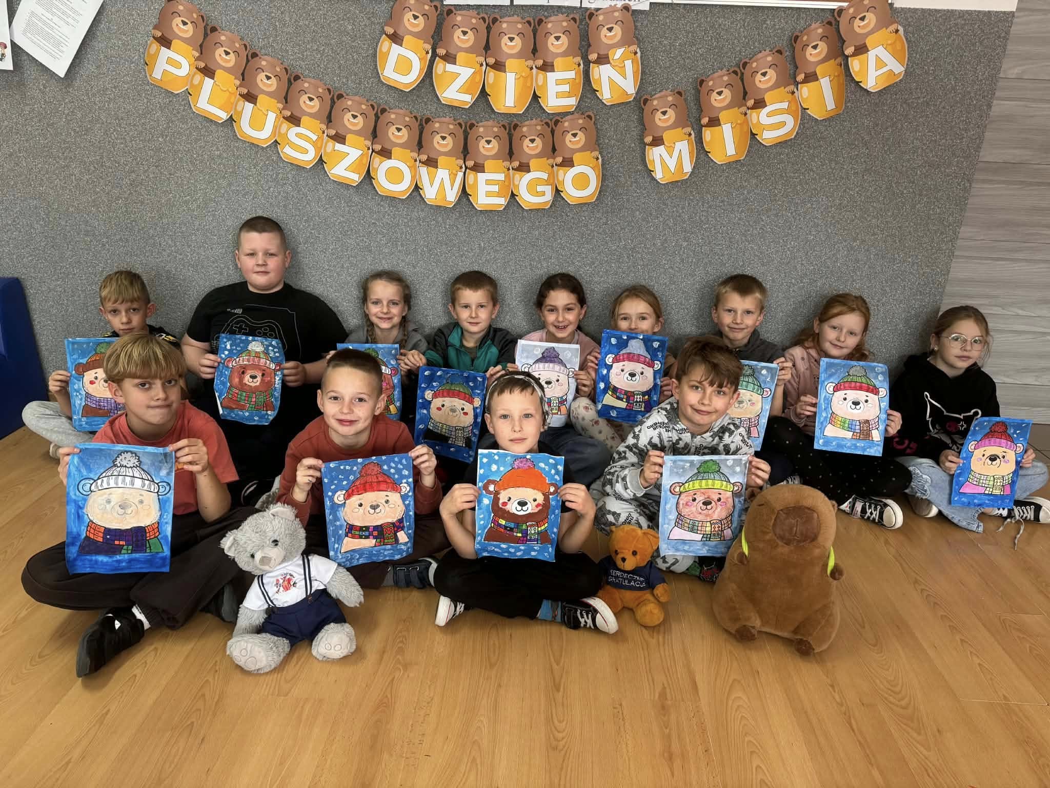 W dniu dzisiejszym w naszej szkole obchodziliśmy „Dzień Pluszowego Misia”.Pluszowy miś to najlepszy przyjaciel każdego dziecka, maskotka na dobre i złe chwile. Był to bardzo fajny dzień dla dzieci, gdyż mogły przynieść do szkoły ulubione pluszaki. Dzieci zostały zaproszone do wspólnej zabawy ze swoimi misiami.Najpierw opowiadały o swoich misiach, a później zaczęły z nimi poranną gimnastykę.Bawiły się między innymi w starą, ale dobrze wszystkim znaną zabawę „stary niedźwiedź mocno śpi”.Na koniec dzieci wykonały pracę plastyczną pt. „Miś”., kolorowały i ozdabiały drewniane misie według własnego pomysłu. Do świętowania dołączyły się również panie ze szkolnej biblioteki czytając przedszkolakom bajeczki i książeczki o misiach. Ten dzień w szkole był pełen uśmiechu, radości oraz wspólnej zabawy.