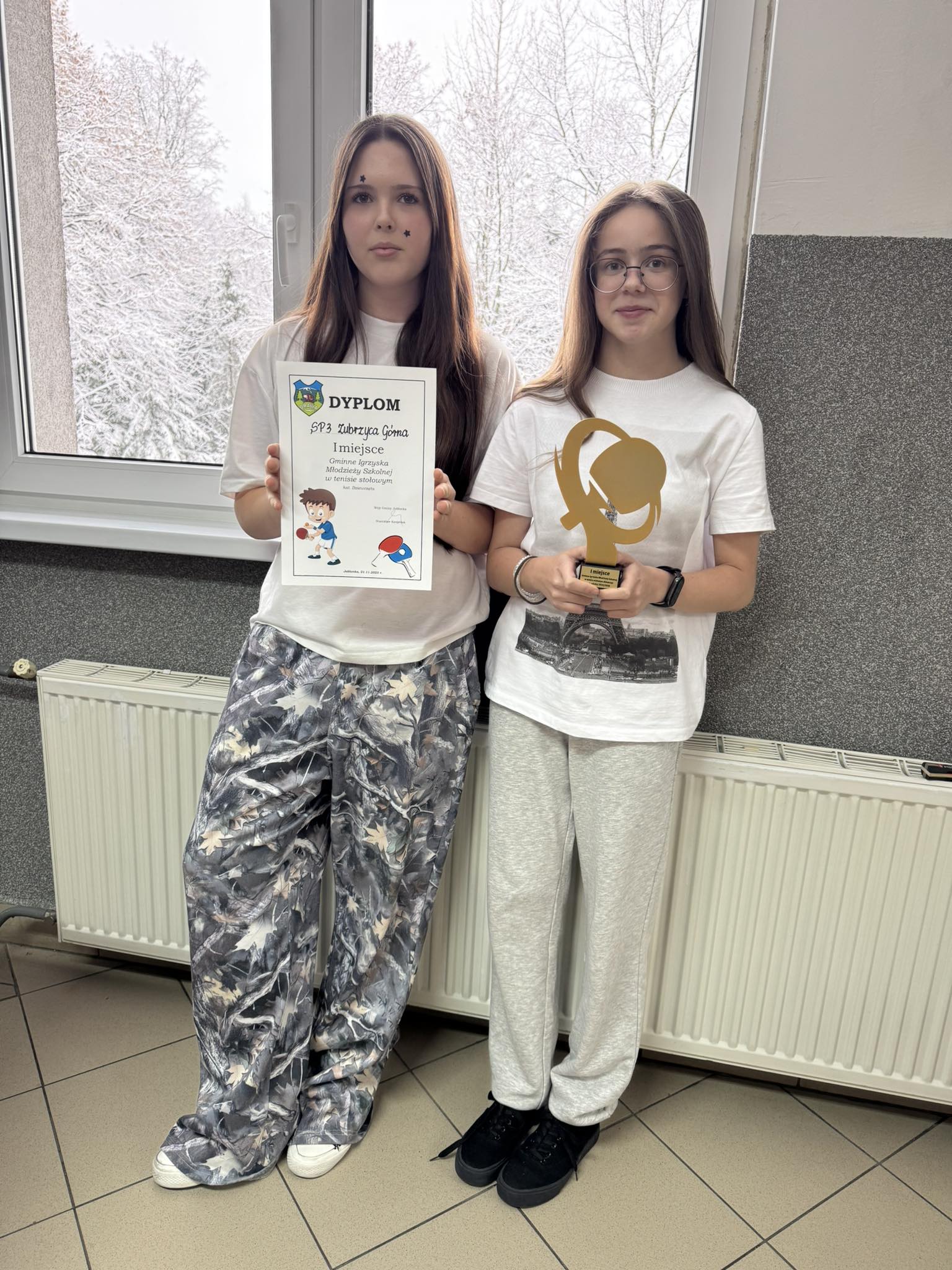 Gminne Igrzyska Młodzieży Szkolnej w tenisie stołowym W kategorii dziewcząt Kornelia Zubrzycka i Marta Sikora zajęły 1 miejsce. Gratulujemy bardzo serdecznie Dziewczyny będą reprezentować gminę w kolejnym etapie rozgrywek