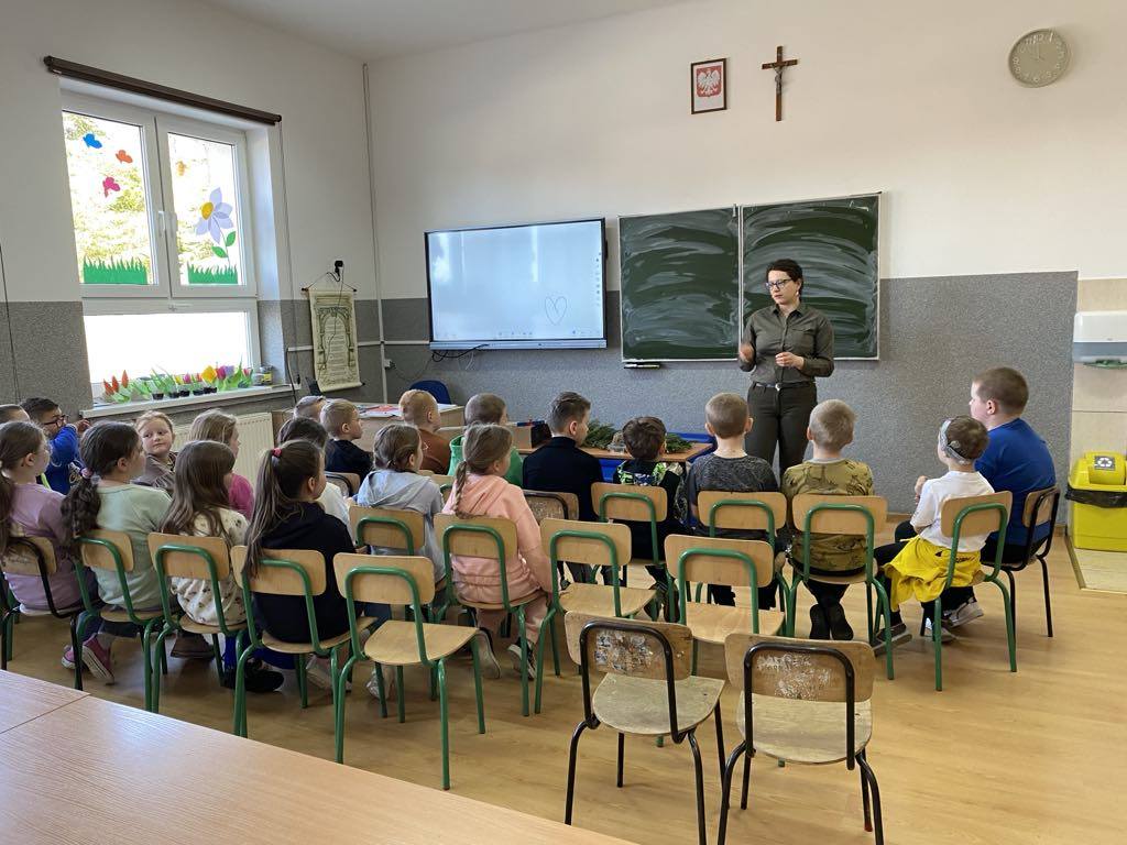 9 kwietnia w naszej szkole gościła Pani Dorota z Nadleśnictwa Nowy Targ, która opowiedziała nam czym zajmuje sie nadleśnictwo, na czym polega ta praca oraz jak zostać leśniczym. Podczas zajęć Pani Dorota przekazała uczniom wiele cennych informacji na temat dzikich zwierząt - ich zwyczajów, środowiska oraz roli w ekosystemie, zwróciła również uwagę na zmiany obecnie zachodzące w populacji dzikich zwierząt żyjących w naszych lasach. Podkreśliła także, że populacja dzika ulega zmniejszeniu, podczas gdy rośnie liczba zwierzyny płowej, takiej jak jelenie. Coraz częściej można również spotkać wilka, który w większych grupach tworzy watahy, co stanowi dowód na zdrowy rozwój ekosystemu.